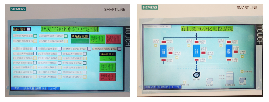 該系統(tǒng)采用CCO型凈化裝置一套,處理風(fēng)量為2000m3/h,功率60kw,電加熱工作時(shí)間約半小時(shí),當(dāng)催化床溫度達(dá)到250~300℃時(shí),催化燃燒床開始反應(yīng),利用廢氣反應(yīng)產(chǎn)生的熱空氣循環(huán)使用,此時(shí)電加熱停止,不需要外加熱,單床脫附,脫附時(shí)間為±2小時(shí),設(shè)定時(shí)間活性炭吸附箱定時(shí)自動(dòng)切換脫附,內(nèi)部裝填的陶瓷蜂窩體貴金屬催化劑使用壽命為20000小時(shí)。整個(gè)脫附系統(tǒng)采用多點(diǎn)溫度控制,保證脫附效果的穩(wěn)定。