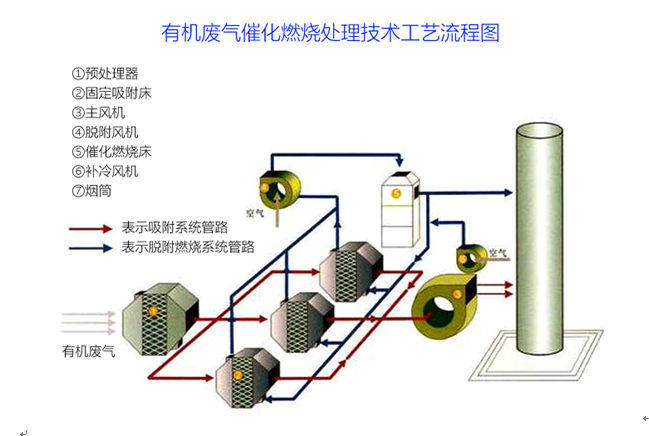 該裝置是將濃縮的有機(jī)廢氣引入主要設(shè)備。有機(jī)廢氣經(jīng)內(nèi)裝加熱裝置從活性炭層中將有機(jī)物分離后,通過催化劑的作用分解成水和二氧化碳,同時(shí)釋放能量,由熱交換裝置置換能量,用于維護(hù)設(shè)備自燃的能源。