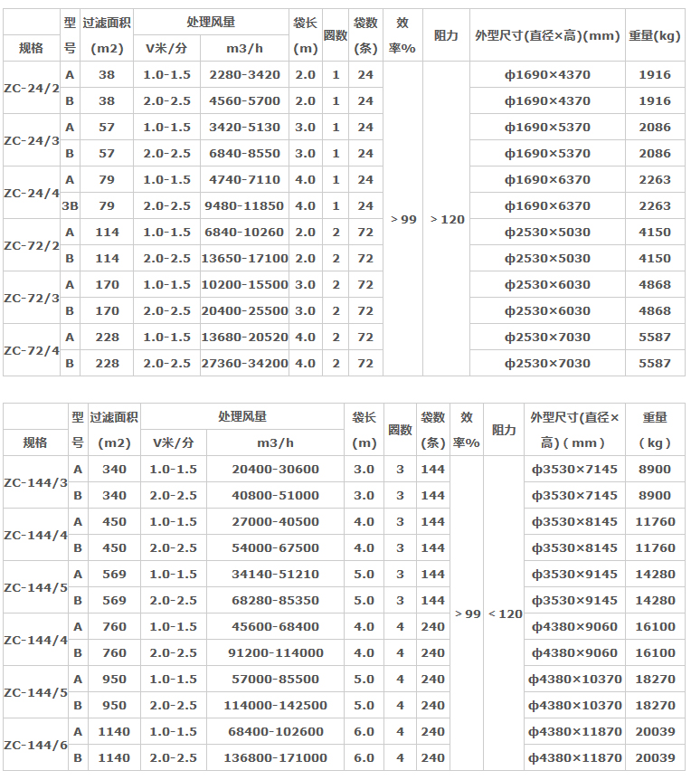 用戶選用應(yīng)注意對溫度高,濃度大、顆粒細(xì)的粉塵應(yīng)選用A型,反之用B型為宜,如濃度大于15g/m3前面應(yīng)加一級旋風(fēng)除塵器。