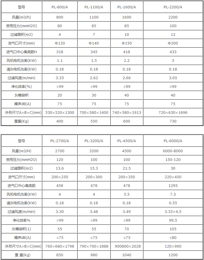 PL-A型系列單機(jī)除塵設(shè)備技術(shù)性能: