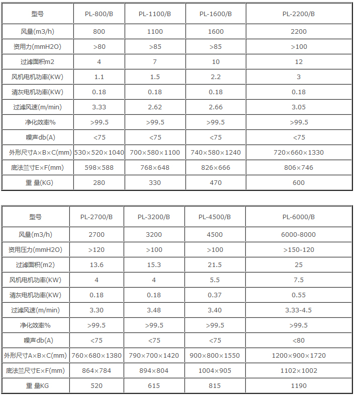 PL-B型系列單機(jī)除塵設(shè)備技術(shù)性能: