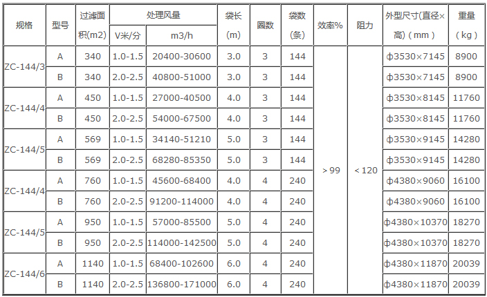 用戶選用應(yīng)注意對溫度高,濃度大,顆粒細(xì)的粉塵應(yīng)選用A型,反之用B型為宜,如濃度大于15克/米3前面應(yīng)加一級旋風(fēng)除塵器。