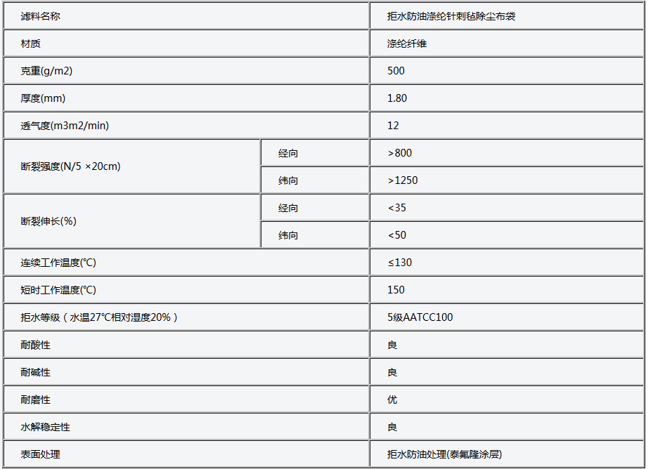 拒水防油針刺氈除塵布袋產(chǎn)品特點: